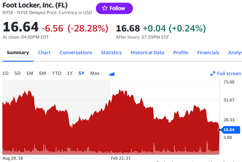 Foot Locker shares plunge 28% as it slashes guidance and blames ‘consumer softness’